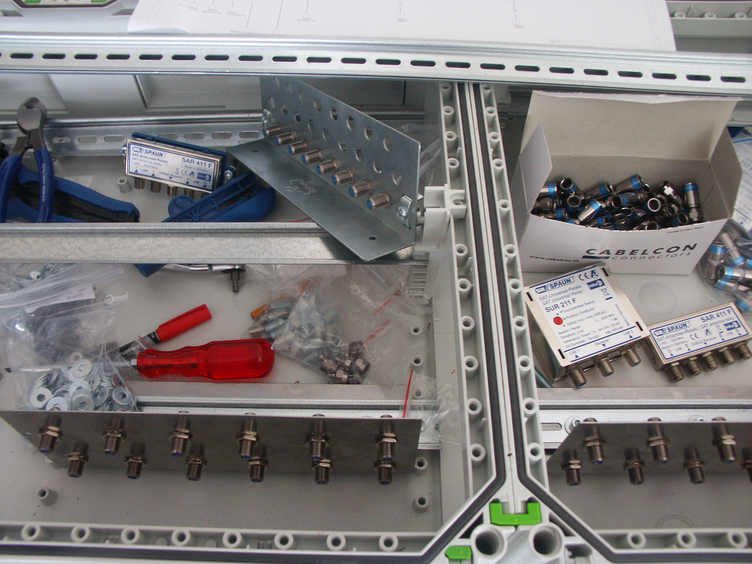 das ganze braucht auch bissl Platz (& Platz für mehr ?) und wird in 2x Spelsberg GTi 5-t mit insgesamt 1200x640x180 verbaut - alles IP68 für den Aussenbereich: